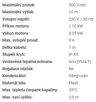 • vhodné pro cirkulaci vody v malých a středně velkých bazénech