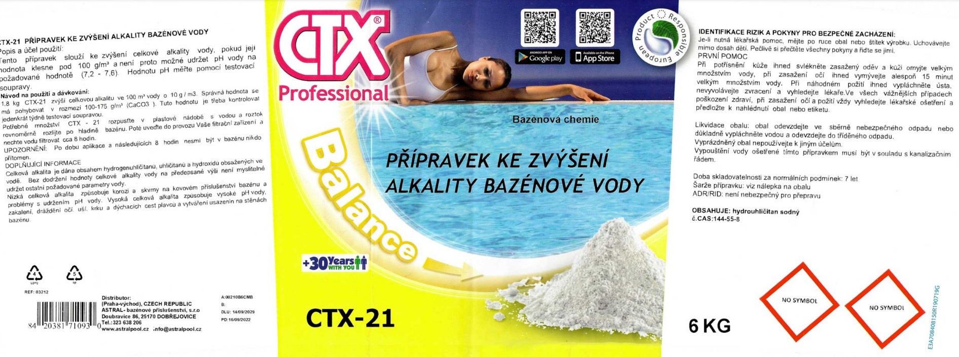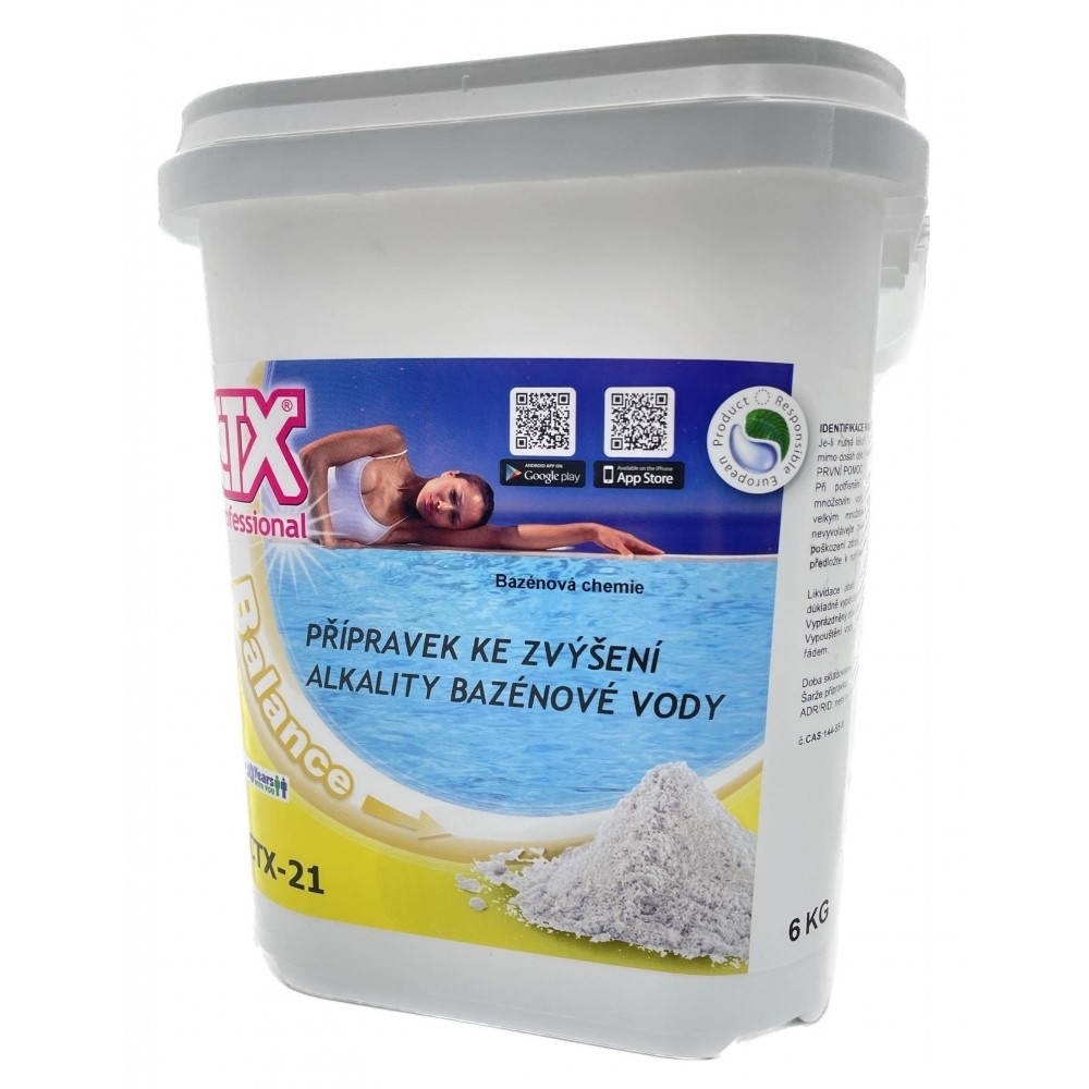 1,8 kg CTX-21 zvýší celkovou alkalitu o cca 10 g/m³ ve 100 m³ vody