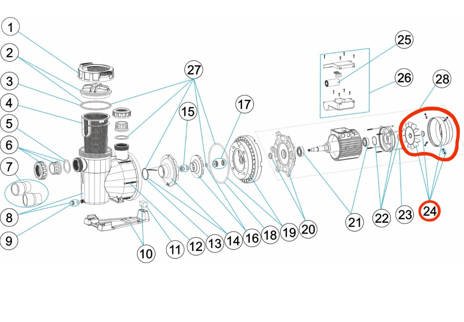 24. Kompletní kryt ventilátoru motoru čerpadel Victoria Plus Silent