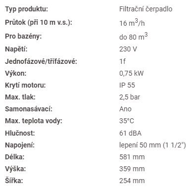 Součástí čerpadla je zachycovač hrubých nečistot o objemu 4,7 litrů.