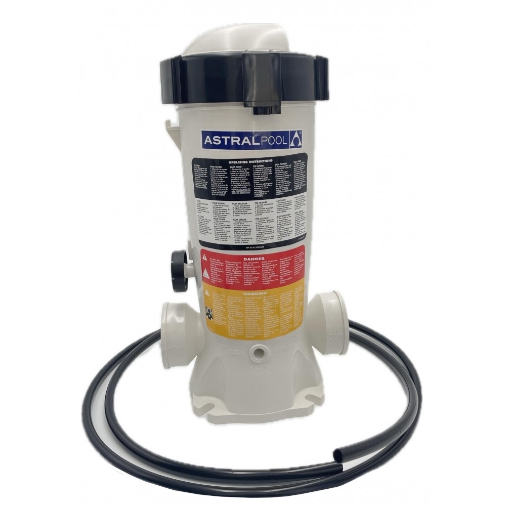 Chlorátor je vyroben z chemicky odolných plastů, má uzávěr s dvojitou pojistkou a jednoduché ovládání. Určen pro pomalurozpustné 200 g tablety chloru nebo bromu. Maximální kapacita cca 3,5 kg tablet.