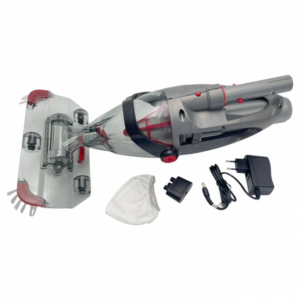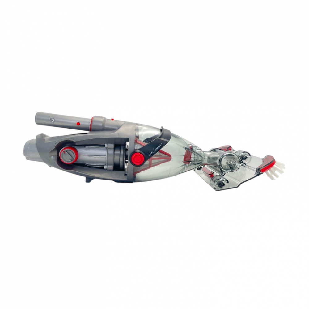 O pohon se stará motor s baterií, která vydrží až 40 minut provozu bez ztráty výkonu. Akumulátorový vysavač Voltera 25 se dodává i s nabíječkou a připojuje se na klasickou teleskopickou tyčku (není součástí).