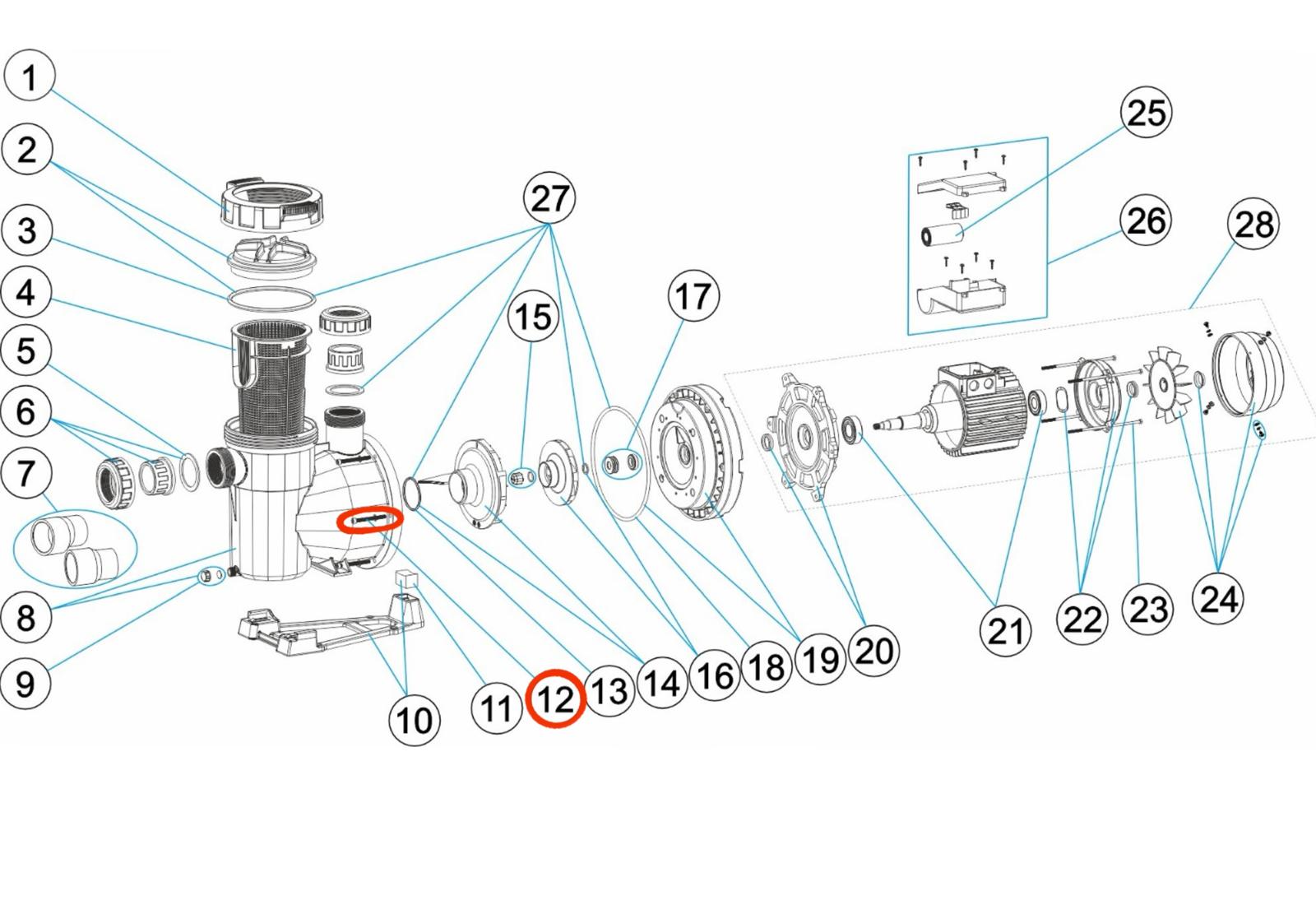 24. Kompletní kryt ventilátoru motoru čerpadel Victoria Plus Silent