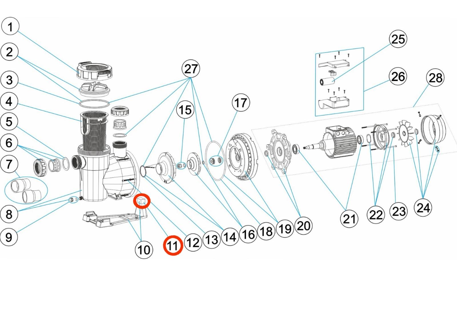 24. Kompletní kryt ventilátoru motoru čerpadel Victoria Plus Silent
